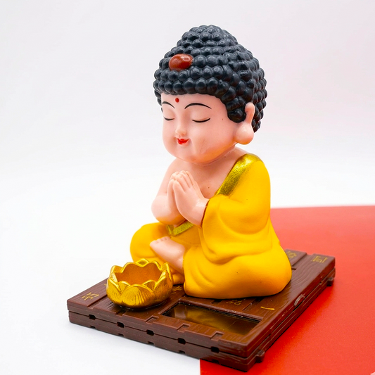 solar powered Cute Little Monk Buddha Figurine for Home Decor, Meditation & Office Desk