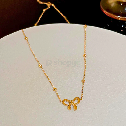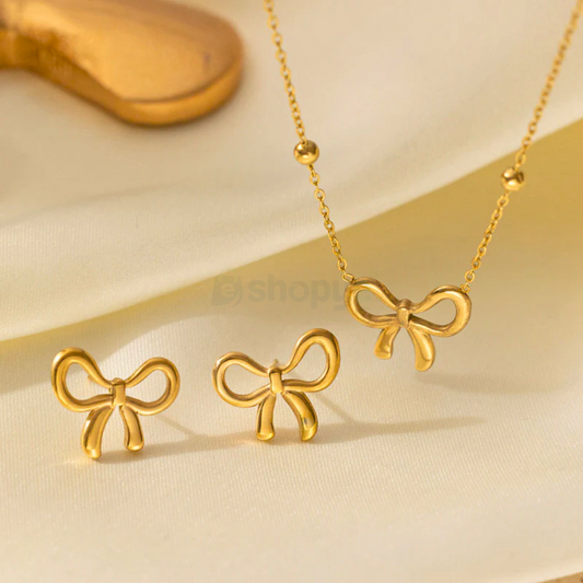 ESHOPYE ™ Gold Plated Bow Themed Jewellery Set – Elegant Anti-Tarnish Desig
