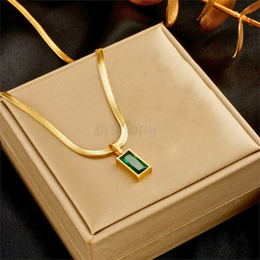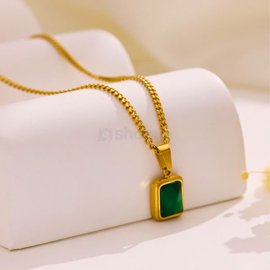 ESHOPYE ™ Gold Plated Green Geometric Pendant – Stylish Anti-Tarnish Jewelry