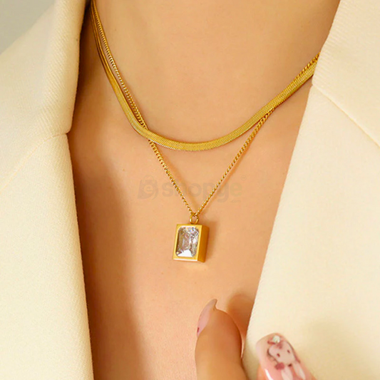 ESHOPYE ™ Tarnish Resistant Gold-Plated White Emerald Layered Necklace – Elegant