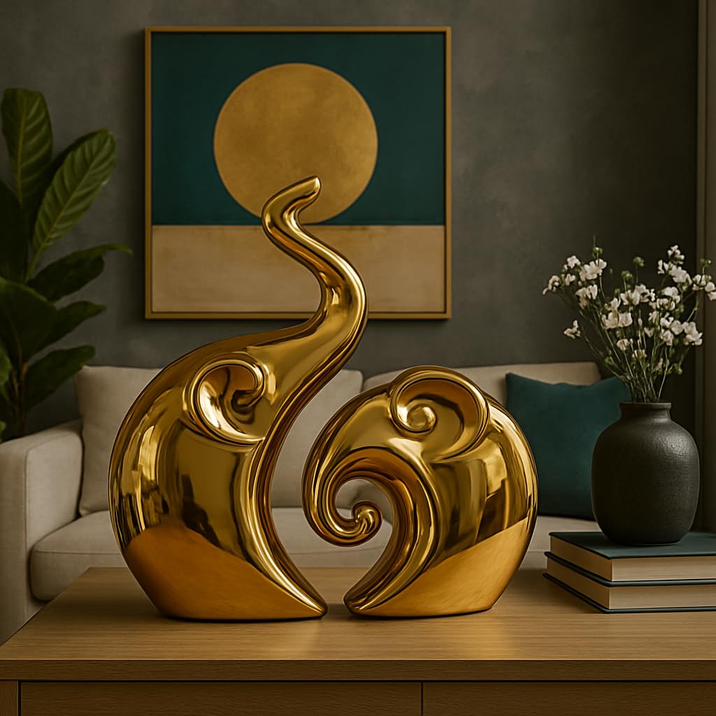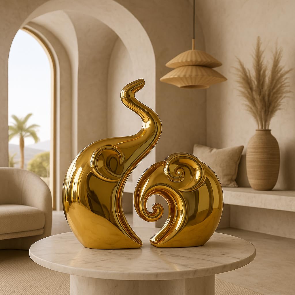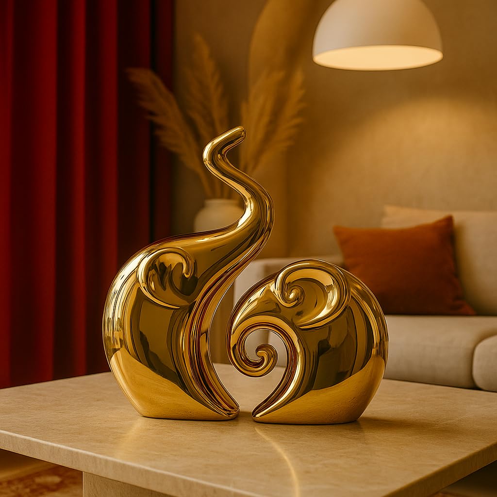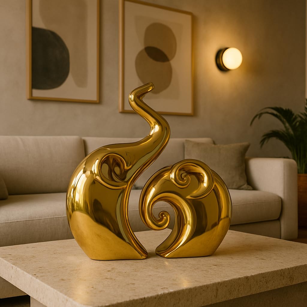 - Pair of Lavish Golden Elephants Lovers Couple Figure Ceramic statue for Home Decor