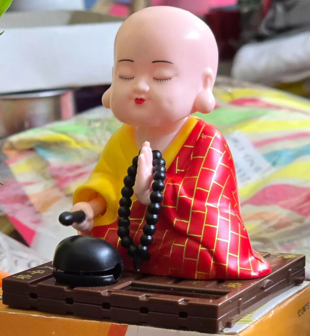 solar powered Cute Little Monk Buddha Figurine for Home Decor, Meditation & Office Desk