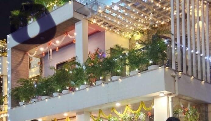 light decorative outdoor lights installed on a railing. The lights give off a warm, cozy ambiance. look cool